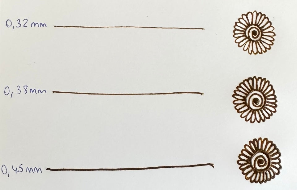 Cône de henna/henné fait maison à base de produits naturels (poudre de henné de Sojat, thé noir, huile essentielle de tea tree et lavande, sucre). Ces produits sont frais et préparés sur commande. Vous pouvez personnaliser leur taille et le diamètre de l'embout.